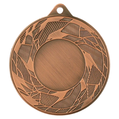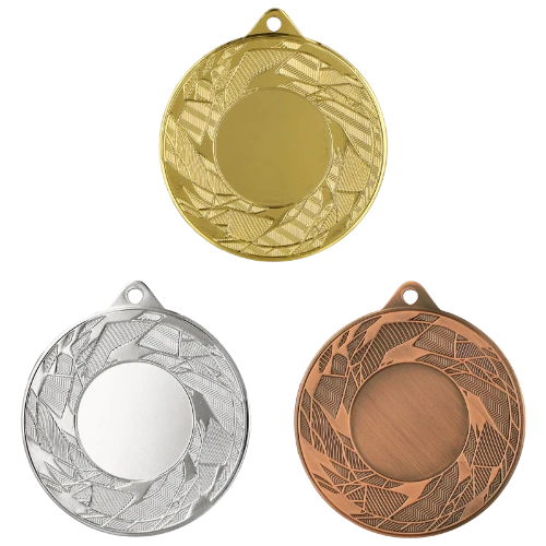 Medal MMC42050 to okrągły medal sportowy o średnicy 50 mm z wzorem na ramce i gładką powierzchnią środkową pod emblemat. Wykonany z metalu. Dostępny w trzech wariantach kolorystycznych: złotym, srebrnym i brązowym. Emblemat z tyłu o średnicy 50 mm. Pasuje do wstążek 11 mm i 22 mm.