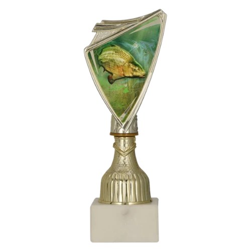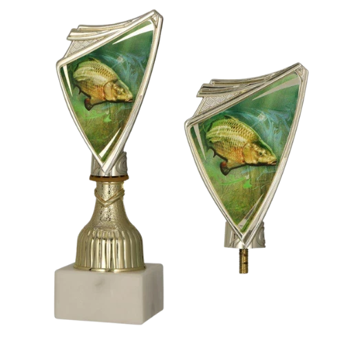 - puchar sportowy z tarczą z grafiką ryby