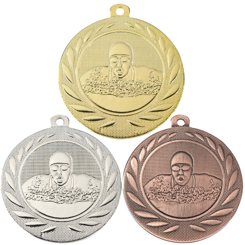 Medal DI5000.H to doskonały wybór na zawody pływackie i wydarzenia sportów wodnych. Motyw przedstawiający pływaka wyłaniającego się z wody w trakcie rywalizacji doskonale oddaje dynamikę, wysiłek i determinację zawodników. Klasyczny wieniec laurowy podkreśla prestiż nagrody i rangę osiągnięcia sportowego.