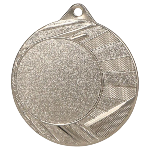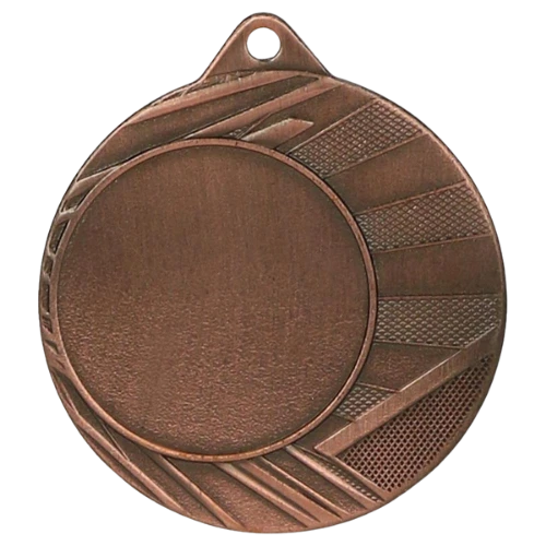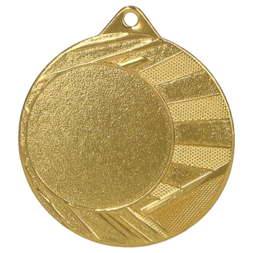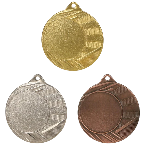 Medal ME0040 to okrągły medal sportowy średnicy 40 mm z charakterystyczną ramką o promieniście ułożonych żłobkach – linie wychodzące od środka ku krawędzi nadają medalowi dynamiczny, energiczny wygląd. Gładka środkowa powierzchnia przygotowana jest pod emblemat z przodu i nadruk sublimacyjny z tyłu (40 mm). Dostępny w trzech wariantach: złotym, srebrnym i brązowym. Pasuje do wstążek 11 mm i 22 mm.