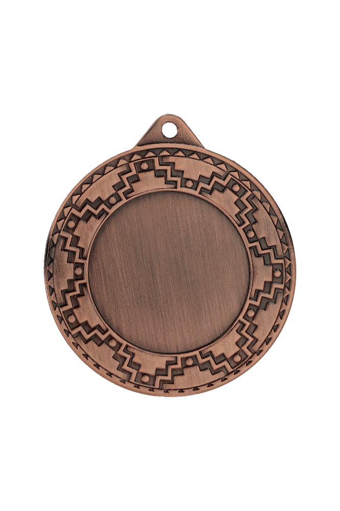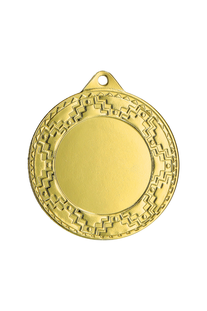 Medal ME0340 to okrągły medal sportowy średnicy 40 mm z ozdobną, ażurową ramką i gładką powierzchnią środkową przygotowaną pod emblemat. Większy format niż standardowe medale 32 mm – emblemat z tyłu mieści pełne 40 mm, co daje wyraźnie więcej miejsca na nadruk sublimacyjny z logo, nazwą zawodów i dedykacją. Dostępny w trzech wariantach: złotym, srebrnym i brązowym. Pasuje do wstążek 11 mm i 22 mm.