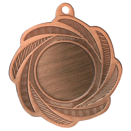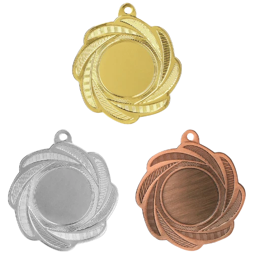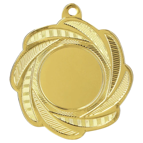 Medal MMC1350 to okrągły medal sportowy o średnicy 50 mm z wzorem na ramce i gładką powierzchnią środkową pod emblemat. Wykonany z metalu. Dostępny w trzech wariantach kolorystycznych: złotym, srebrnym i brązowym. Emblemat z tyłu o średnicy 50 mm. Pasuje do wstążek 11 mm i 22 mm.