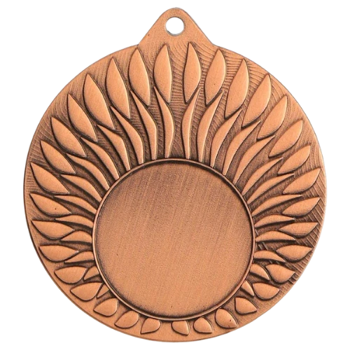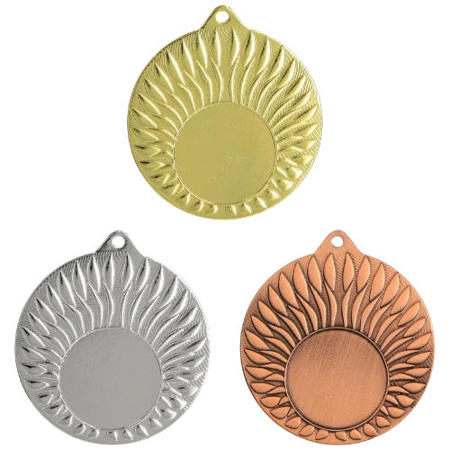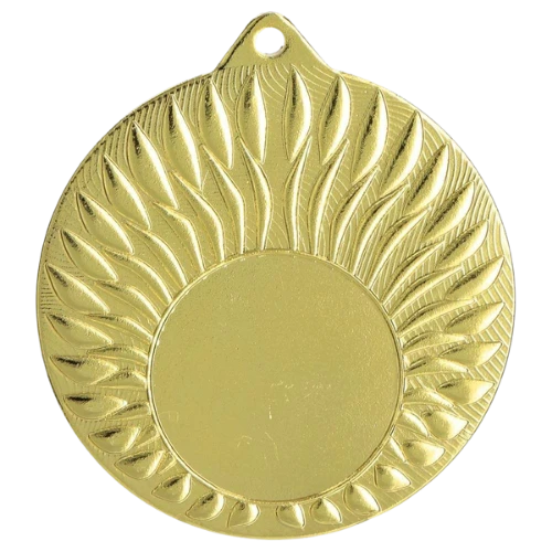 Medal MMC24050 to okrągły medal sportowy o średnicy 50 mm z wzorem na ramce i gładką powierzchnią środkową pod emblemat. Wykonany z metalu. Dostępny w trzech wariantach kolorystycznych: złotym, srebrnym i brązowym. Emblemat z tyłu o średnicy 50 mm. Pasuje do wstążek 11 mm i 22 mm.