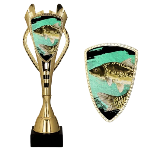 Puchar plastikowy złoty 7243/FIS to nagroda przygotowana na zawody i wydarzenia związane z wędkarstwem. Górną część pucharu uzupełnia tarcza z grafiką ryby, dzięki czemu motyw dyscypliny jest od razu czytelny i dobrze pasuje do konkursów wędkarskich, spotkań kół wędkarskich oraz imprez organizowanych nad wodą. Złota forma w połączeniu z ciemną marmurową podstawą porządkuje całość i tworzy klasyczną oprawę nagrody. To model odpowiedni tam, gdzie potrzebny jest puchar wędkarski dostępny w kilku wysokościach.