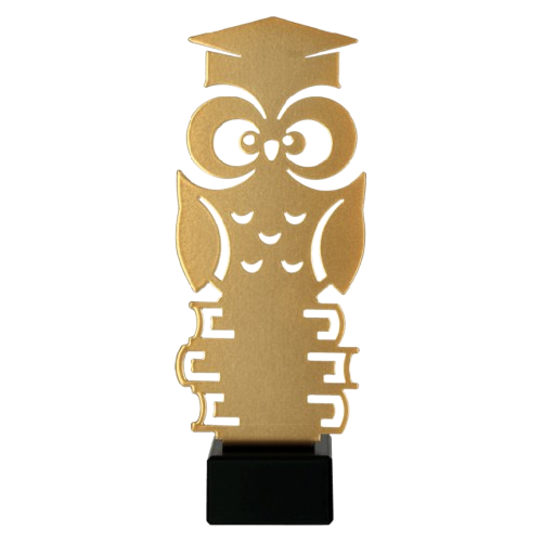Statuetka metalowa Sowa ML-SCH to nagroda przygotowana z myślą o wydarzeniach związanych ze szkolnictwem, edukacją i osiągnięciami naukowymi. Forma przedstawia sowę w birecie osadzoną na stylizowanym motywie książek, dzięki czemu charakter wyróżnienia jest od razu czytelny i dobrze pasuje do uroczystości szkolnych, akademickich oraz konkursów edukacyjnych. Złote wykończenie w połączeniu z ciemną marmurową podstawą porządkuje całość i nadaje modelowi reprezentacyjny charakter. To propozycja odpowiednia tam, gdzie potrzebna jest wyrazista statuetka związana z wiedzą, nauką i edukacją.