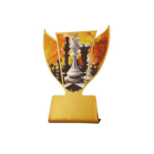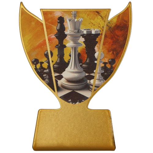 Statuetka metalowa Szach-Mat SL-CHE to niewielka nagroda przygotowana z myślą o wydarzeniach związanych z szachami. Front statuetki zdobi grafika figur szachowych ustawionych na szachownicy, z królem na pierwszym planie, dzięki czemu charakter wyróżnienia jest od razu czytelny i dobrze pasuje do turniejów, rozgrywek szkolnych oraz wydarzeń organizowanych przez kluby i stowarzyszenia szachowe. Złota forma porządkuje całość i nadaje modelowi klasyczny wygląd. To propozycja odpowiednia tam, gdzie potrzebna jest mała statuetka szachowa z wyraźnym motywem dyscypliny.