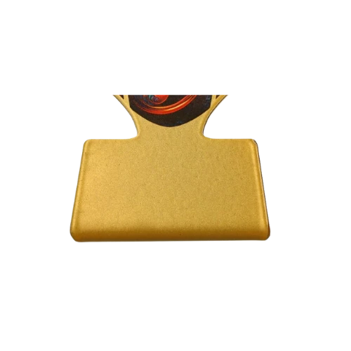 Statuetka metalowa z serii Slim Line z motywem muzycznym przedstawia dekoracyjną kompozycję z kluczem wiolinowym otoczonym barwnymi ornamentami inspirowanymi światem dźwięku i sztuki. Dynamiczna, artystyczna grafika symbolizuje harmonię, rytm oraz kreatywność, dzięki czemu statuetka doskonale wpisuje się w charakter wydarzeń związanych z muzyką i występami scenicznymi.