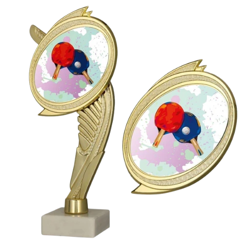 - trofeum sportowe z wkładką z grafiką rakietek i piłeczki do tenisa stołowego