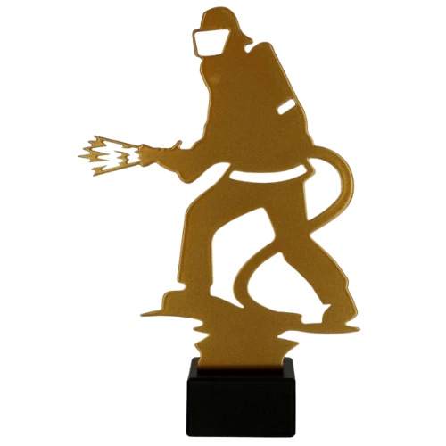 Statuetka metalowa Strażak w Akcji ML-FIR2 to nagroda przygotowana z myślą o wydarzeniach związanych ze strażactwem. Forma przedstawia sylwetkę strażaka podczas działań gaśniczych, z wyraźnie zaznaczonym motywem strumienia wody i węża pożarniczego, dzięki czemu tematyka wyróżnienia jest od razu czytelna i dobrze pasuje do zawodów, uroczystości oraz wydarzeń organizowanych przez jednostki strażackie. Złote wykończenie w połączeniu z ciemną marmurową podstawą porządkuje całość i nadaje modelowi reprezentacyjny charakter. To propozycja odpowiednia tam, gdzie potrzebna jest nieduża statuetka strażacka z wyraźnym motywem służby.