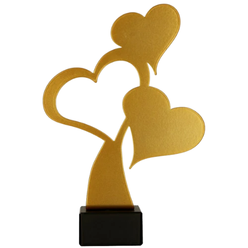 Statuetka metalowa Złote Serca Miłości ML-HEA2 sprawdzi się jako nagroda lub pamiątka podczas jubileuszy, podziękowań, wydarzeń okolicznościowych, uroczystości szkolnych, spotkań firmowych oraz inicjatyw społecznych. Może być wręczana jako symbol wdzięczności, uznania, zaangażowania albo pamiątka ważnej okazji.