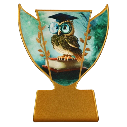 Statuetka metalowa Szkoła SL-SCH3 to niewielka nagroda przygotowana z myślą o wydarzeniach związanych z edukacją, nauką i osiągnięciami uczniów. Front statuetki zdobi grafika sowy w birecie stojącej na książce, dzięki czemu charakter wyróżnienia jest od razu czytelny i dobrze pasuje do uroczystości szkolnych, konkursów wiedzy oraz wydarzeń organizowanych przez szkoły i instytucje edukacyjne. Złota forma porządkuje całość i nadaje modelowi klasyczny wygląd. To propozycja odpowiednia tam, gdzie potrzebna jest mała statuetka edukacyjna z wyraźnym motywem nawiązującym do wiedzy i nauki.