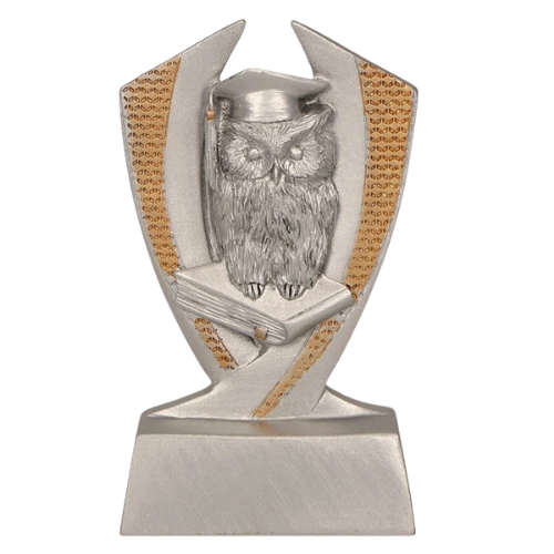 Statuetka odlewana Mądra Sowa RE018 to niewielka nagroda okolicznościowa przygotowana z myślą o wydarzeniach związanych ze szkolnictwem, edukacją i osiągnięciami naukowymi. Front statuetki przedstawia sowę w birecie stojącą na książce, dzięki czemu charakter wyróżnienia jest od razu czytelny i dobrze pasuje do uroczystości szkolnych, akademickich oraz konkursów edukacyjnych. Srebrno-złota kolorystyka nadaje modelowi elegancki wygląd, a odlewana podstawa porządkuje całość i tworzy miejsce na personalizację. To propozycja odpowiednia tam, gdzie potrzebna jest mała nagroda związana z wiedzą, nauką i edukacją.