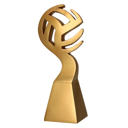 Statuetka odlewana złota RP5012-23/G to nagroda sportowa z motywem piłki siatkowej. Górna część ma formę stylizowanej piłki osadzonej na smukłej podstawie, dzięki czemu model wyraźnie nawiązuje do siatkówki. Złote wykończenie dobrze pasuje do charakteru nagrody wręczanej podczas turniejów, meczów i wydarzeń sportowych. To propozycja dla organizatorów, którzy szukają statuetki siatkarskiej z prostym motywem dyscypliny i miejscem na personalizację.