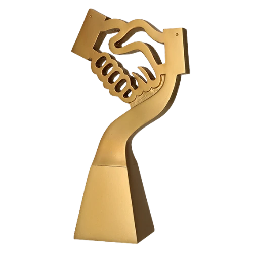 Statuetka odlewana Podziękowanie RP5014-23/G to nagroda okolicznościowa przygotowana z myślą o wyróżnieniach, podziękowaniach i uroczystościach, podczas których ważne są relacje, współpraca oraz uznanie dla zaangażowania. Motyw uścisku dłoni sprawia, że model dobrze pasuje do wydarzeń firmowych, jubileuszy, spotkań branżowych, gali, uroczystości szkolnych oraz inicjatyw organizowanych przez instytucje, stowarzyszenia i fundacje. Złota kolorystyka i zwarta forma tworzą czytelną nagrodę, która dobrze prezentuje się podczas wręczenia i po ustawieniu w biurze, gabinecie albo sali konferencyjnej. To propozycja dla osób szukających statuetki z symbolicznym motywem i miejscem na personalizację.