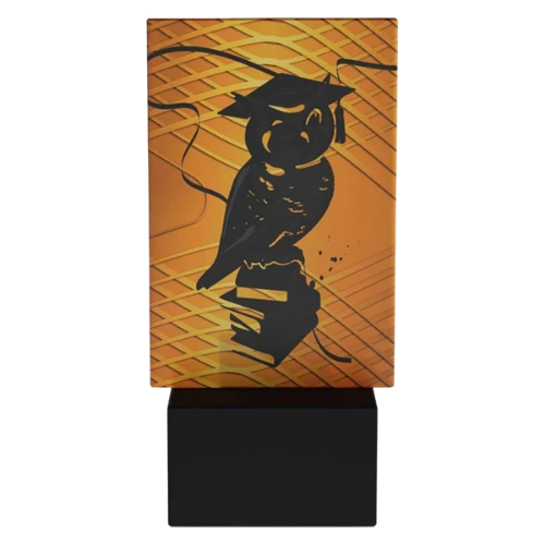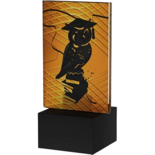 Mini Trofeum Amber Line AG1-12/SCH to niewielka nagroda okolicznościowa przygotowana z myślą o wydarzeniach związanych ze szkolnictwem, edukacją i osiągnięciami uczniów oraz studentów. Front trofeum zdobi grafika sowy w birecie stojącej na książkach, dzięki czemu charakter wyróżnienia jest od razu czytelny i dobrze pasuje do uroczystości szkolnych, akademickich oraz konkursów edukacyjnych. Złoto-czarna kolorystyka porządkuje całość, a ciemna marmurowa podstawa tworzy miejsce na personalizację. To model odpowiedni tam, gdzie potrzebne jest nieduże trofeum edukacyjne z wyraźnym motywem nawiązującym do wiedzy i nauki.