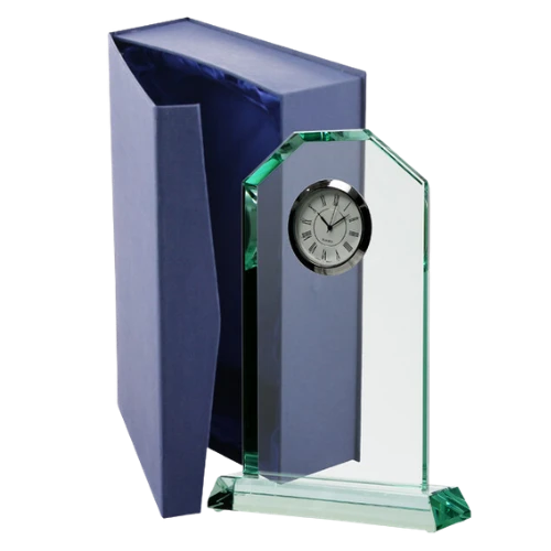 Statuetka szklana G029 to wyjątkowe połączenie elegancji i funkcjonalności – klasyczna forma trofeum szklanego z wbudowanym zegarem kwarcowym, wykonana z wysokiej jakości szkła o przyjemnej, lekko zielonej barwie. Sprawdzi się jako nagroda dla pracownika, trofeum sportowe oraz oryginalny upominek korporacyjny.